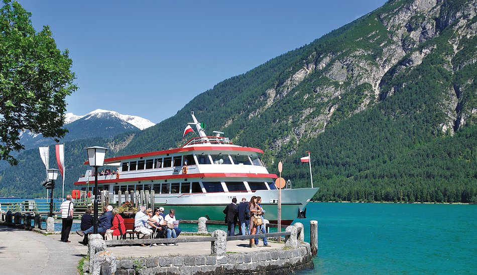 Mit unserem Bus und Bordfrühstück auf der Anreise reisen wir nach Achenkirch. Hier steigen Sie auf Ihr eBike und gemütlich geht’s mit dem Rad am Ostufer des fjorartigen See entlang. Kleine Pausen unterwegs und schönes Panorama begleiten uns. Die 25 km Radltour endet in Pertisau. Dort geben Sie an unserem Bus die Räder ab, wenn Sie möchten - wechseln Sie Schuhwerk oder Kleidung, denn Ihr Gepäck fährt parallel mit dem Bus zur Radtour mit. Dann gehts zu Fuß auf der Westseite des Sees weiter. 4 km, 50 Höhenmeter sind gut zu schaffen, Sie sollten trittsicher und ein wenig schwindelfrei sein. Der Weg führt herrlich am Fels entlang und immer wieder tauchen die Buchten des grünblauen See auf. Sie fühlen sich wie auf Elba oder Sardinien. Nun kommen Sie zur Gaisalm, ein nettes Lokal, welches nicht mit Fahrzeugen angefahren werden kann. Aber das Achensee Schiff startet hier. Wenn Sie die Tour beenden möchten, steigen Sie auf das Schiff und fahren nach Achenkirch. Hat die Pause an der Gaisalm noch Reserven gelockt, laufen Sie den 2.Teil des Westweges (nur für geübte Wanderer) - ein auf und ab über Stufen und spektakulären Aussichten oberhalb des Sees. Weitere 4 km und 150 hm kommen zusammen. So erreichen Sie Achenkirch, kehren in den Seebiergarten ein und wir treten glücklich die Heimreise an! Ein einmaliger Aktivtag am Achensee!