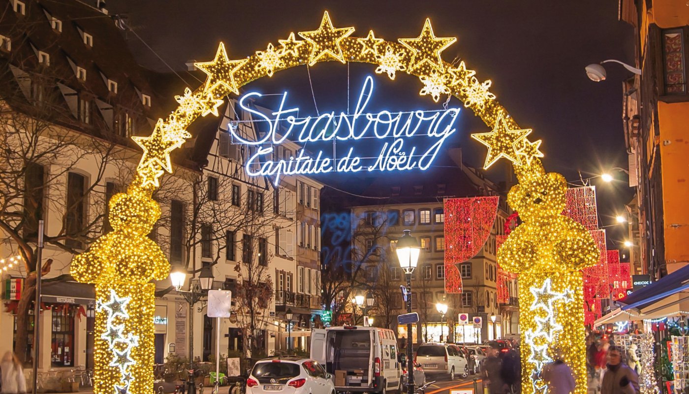 Auch im Winter fahren die typischen Gondeln durch Colmar, eine Fahrt, die Sie sich nicht entgehen lassen sollten. Vom Wasser aus haben Sie einen traumhaften Blick auf die bunt beleuchteten Fachwerkhäuser, die sich im Wasser spiegeln. Rund vier Wochen im Jahr, nämlich in der Adventszeit, verwandelt sich das idyllische Städtchen im festlichen Licht, geschmückt in allen Ecken und Enden. Das ist Colmar – was wir am Samstag besuchen – 200 Buden auf vier verschiedenen Plätzen! Am Sonntag geht’s zu einem der größten Weihnachtsmärkte Europas. Entdecken Sie die Weihnachtshauptstadt Frankreichs mit gut 300 Buden! Das ist Strassburg.