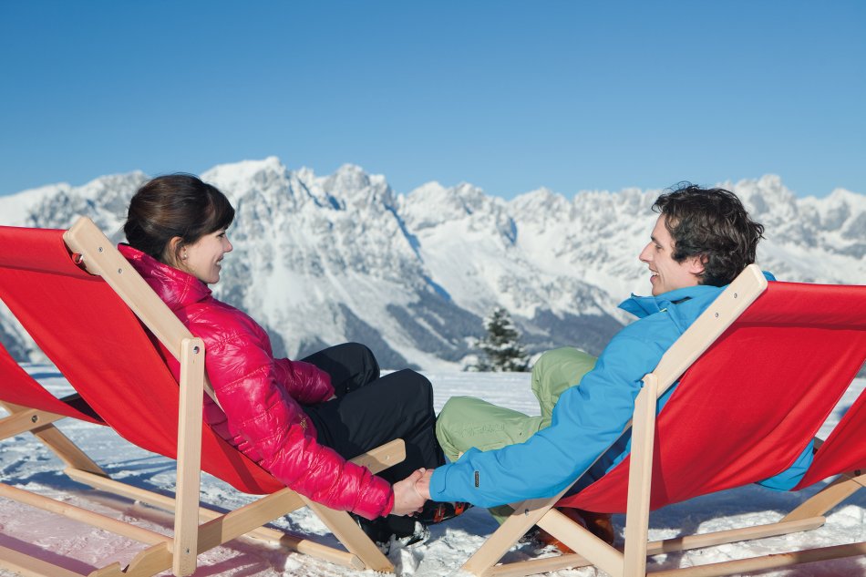 Die SkiWelt Wilder Kaiser – Brixental ist eines der größten und modernsten Skigebiete weltweit und zählt trotz relativ niedriger Seehöhe doch zu den schneesichersten und vielseitigsten Wintersportregionen der Alpen. Auszeichnungen am laufenden Band belegen es: durch 284 km Pisten, 90 modernste Bahnen sowie über 70 urige Hütten ist hier der Winterspaß einfach „Weltspitze“. Durch enorme Investitionen (im letzten Winter 27 Millionen) und Erweiterung der Beschneiungsanlagen, sowie Erneuerung verschiedener Lifte ist die gesamte Skiwelt irrsinnig gut! Wir fahren die Talstation in SCHEFFAU an, hier haben Sie gute Ski- und Snowboard Leihmöglichkeiten und auf der letzten Talabfahrt gleich mehrere urige Hütten.
