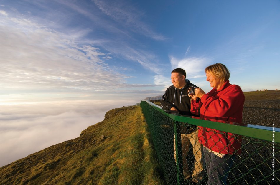 Wenn Sie möchten, fahren Sie am frühen Morgen mit dem Original Hurtigrutenschiff (extra) direkt durch die Fjordlandschaft bis nach Honningsvog. Von hier ist es nur noch 1 Fahrstunde zum Nordkap. Vom 12.05. – 29.07. ist die Mitternachtssonne vorherrschend, d.h. 80 Tage lang keine Nacht. Für die Besucher wurden die Nordkaphallen errichtet, ein Steingebäude mit Mitternachtssonnenfenstern. In der unterirdischen Bar kann man, bei einem Gläschen Sekt, durch die Panoramafenster, die Mitternachtssonne glitzernd über dem Eismeer erleben. Der Höhepunkt Ihrer Reise!