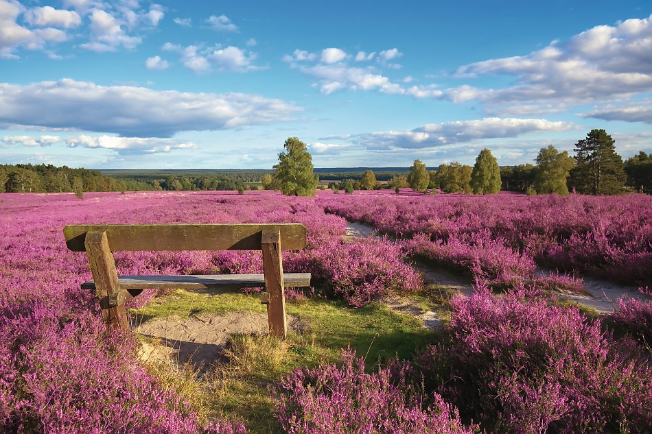 Heidekraut ohne Ende! Im Naturschutzgebiet kommen Sie zum Wilseder Berg, wo wir eine Kutschfahrt unternehmen. Wir besuchen das Heide-Erlebniszentrum und den Heidegarten Scheveningen!