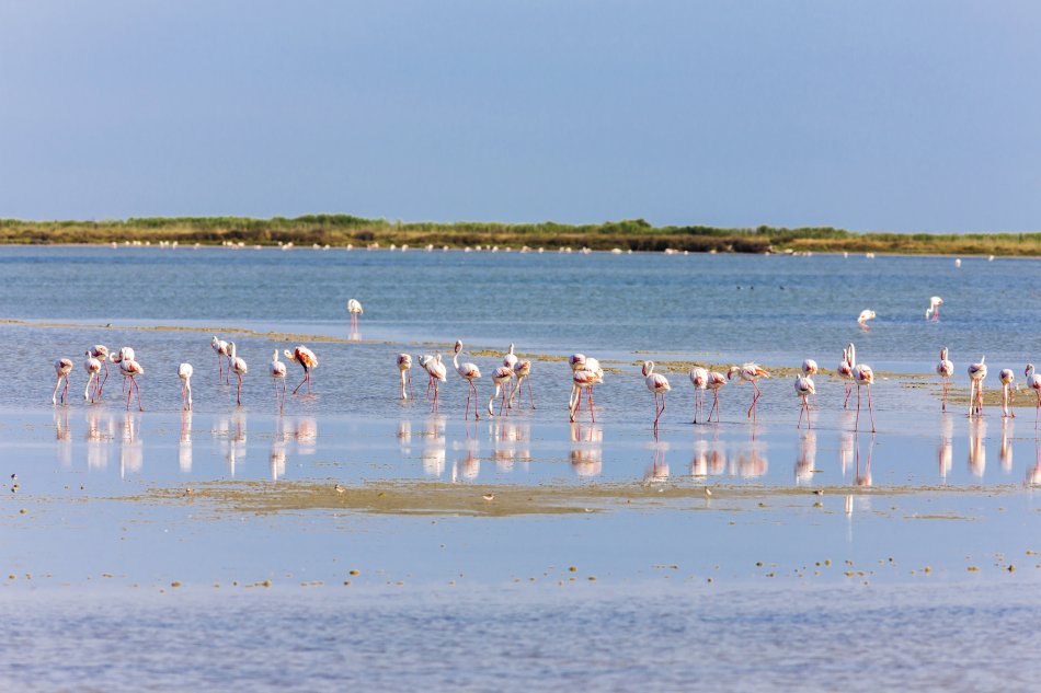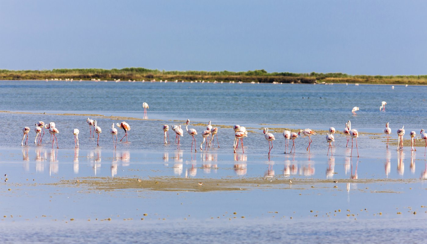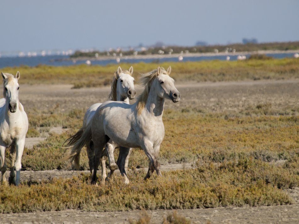 Heute werden Sie im Naturpark Camargue radeln. Der Tag ist geprägt von freilebenden Stierherden, den wilden weißen Pferden und rosa Flamingos. Sie umqueren das Biosphäregebiet mit den Salzwiesen und radeln ein Stück direkt am Meer entlang. Unterwegs bietet sich die tolle Urlaubsstadt Saint Maires sul Mer zur längeren Pause an. Ein absoluter Kontrast zu den anderen Radltagen und auch die längste Etappe (auf Wunsch abkürzbar)