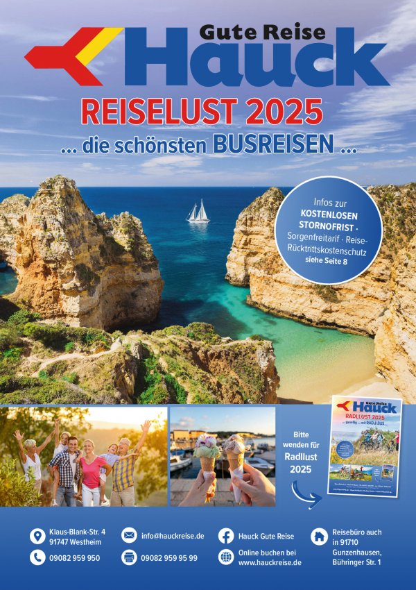 Für Vereine und Gruppen oder Firmen für Betriebsausflüge organisieren wir gerne das gesamte Reiseprogramm für Sie. Geben Sie Ihre wertvolle Zeit in unsere Hand – wir haben Erfahrung und die besten Kontakte für Ihr Gute Reise Hauck Reiseerlebnis.